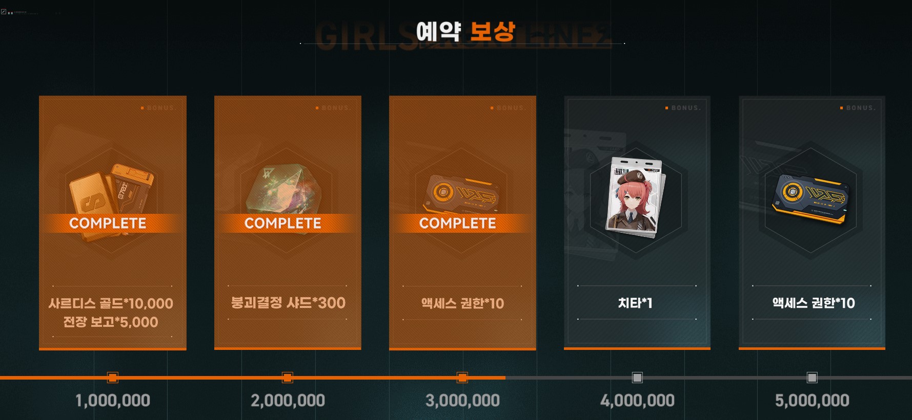 현재 글을 작성중인 11월 13일을 기준으로 325만 명이라는 어머어마하게 많은 분들이 사전예약을 완료하신 상태입니다. 그래서 제일 중요한 뽑기권이라 불리는 액세스 권한 10개는 확보가 된 상태이며, 아직 출시하기까지 시간이 남은 점을 고려하면 최대 보상인 500만 명까지는 충분하게 달성될 것으로 예상됩니다.