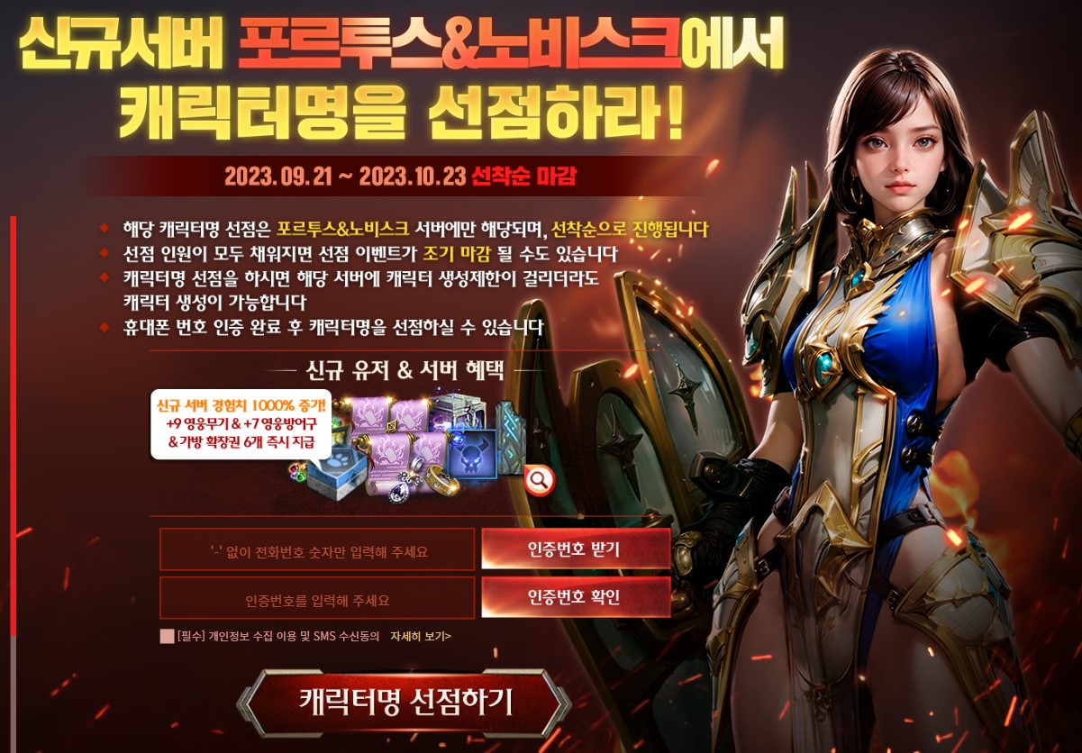 신규 서버인 포르투스와 노비스크 서버 출시에 맞춰 캐릭터명을 미리 확보할 수 있는 이벤트도 진행 중인데, 선착순 마감이기 때문에 원하시는 닉네임이 있으신 분이라면 빨리 신청해야 할 것 같습니다. 선점 신청을 하게 되면 선정 코드를 부여해 주는데 타인에게 공개되지 않도록 주의하시고, 혹시 모르니 사진도 찍어두시길 추천드립니다.