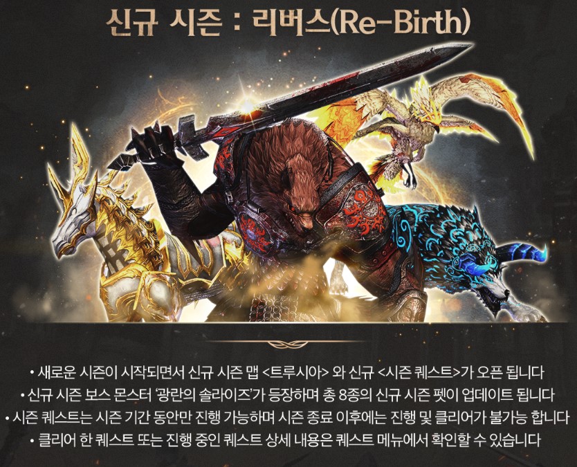 이번 시즌3 업데이트 주요 콘텐츠는 신규 맵과 신규 퀘스트가 출시됩니다. 시즌 퀘스트는 시즌 기간 동안만 진행가능하며, 신규 보스몬스터와 펫도 함께 출시됩니다.